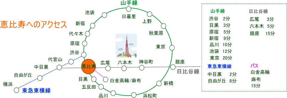 ● 日比谷線恵比寿駅 出口1,出口2より徒歩2分