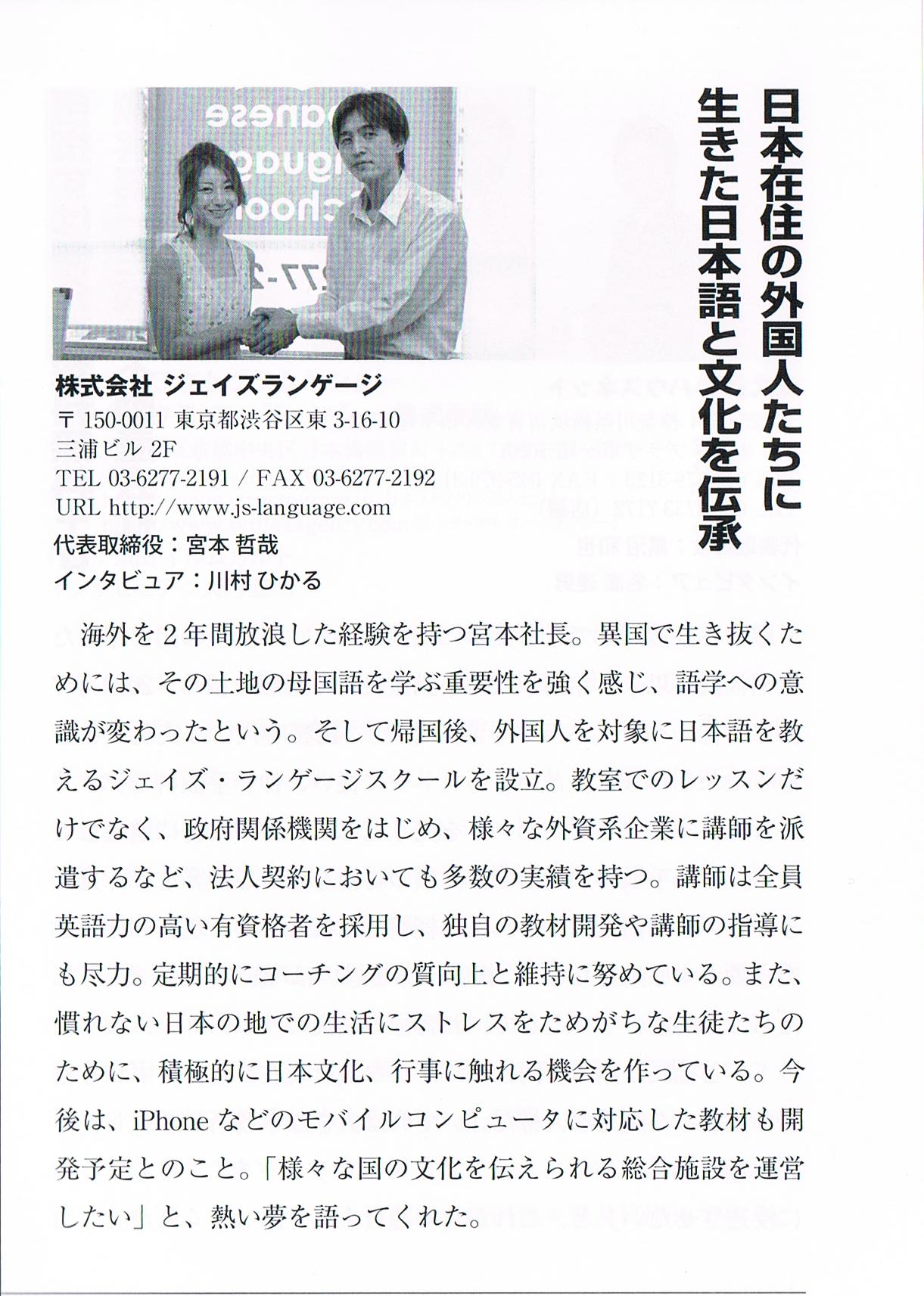 Cover Article Japan Times インタビュー 2013 Metropolice Magazine 2010 Company Tank 2010. 11月トップインタビュー Metropolis Magazine 2009